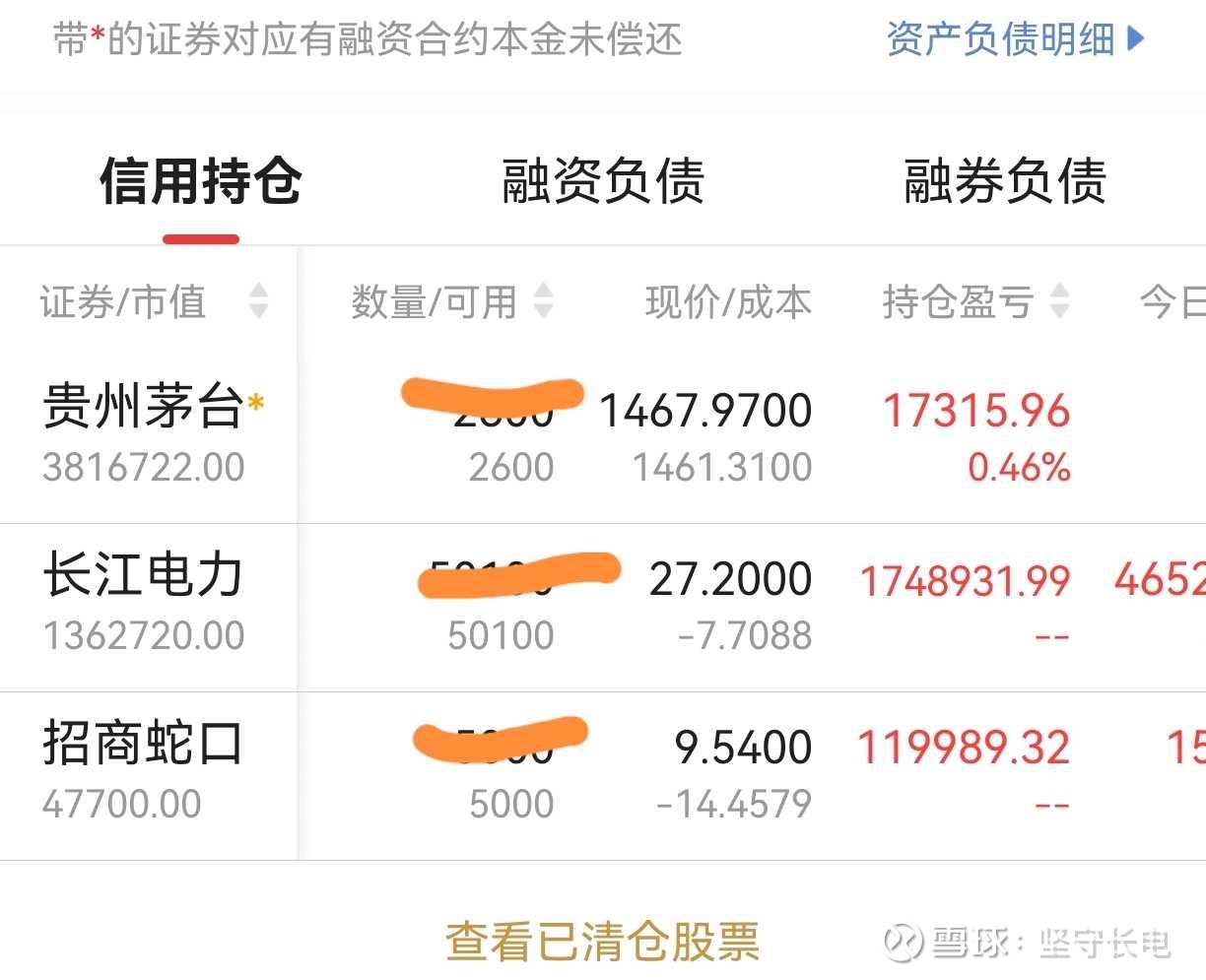 经过一个半月的纠结和思考,最后还是做出决定:减仓一半长江电力,把它换成贵州茅台。目前两家公司PE差不多,贵州茅台的股息率略高。贵州茅台作为贵州省财政支柱企业,被上面薅羊毛的可能性要小些。调仓后长江电力仓位变成5万股,成本负7.7元,茅台持股数量2000股,这样每年分红还是能保持在10万元左右不变。$长江电力(SH600900)$ $贵州茅台(SH600519)$ $招商蛇口(SZ001979)$