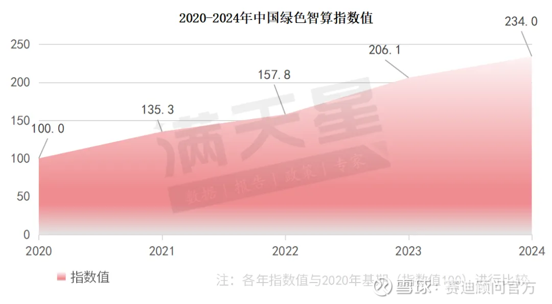 从指数值表现来看,中国绿色智算发展势头强劲,处于高速上行阶段。2024年指数值达234,较基期增长1.34倍,表明中国绿色智算发展处于高速上行阶段。其中生成式AI成为2024年引爆增长的奇点,引发了绿色智算的巨大需求。