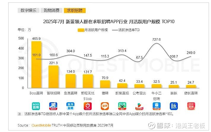 而BOSS直聘确实也挺争气。之前看到过一个数据,2025年7月,BOSS直聘上新蓝领人群月活规模为465.9万,约为行业第二、第三和第四新蓝领人群月活的总和。用户量是有滚雪球效应的,蓝领用户越多,BOSS直聘在这块的收入前景就越广阔。
