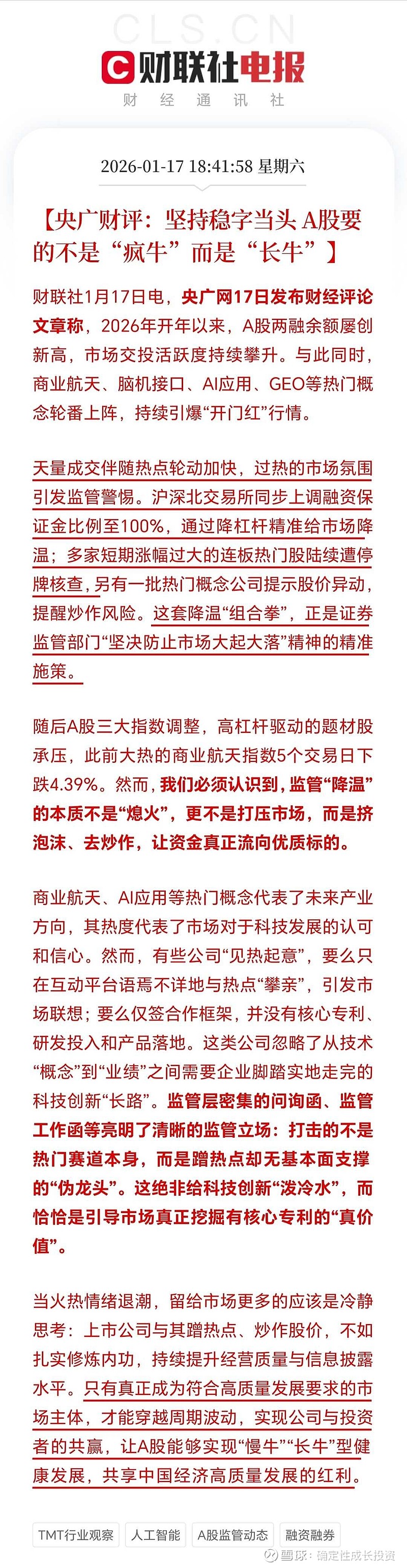 央广网直接下场安抚AI应用,和商业航天一样都是未来产业的方向,这一点对市场信心很重要。村里也不是要打压市场,而是不要疯牛,要慢牛。下周,AI应用会得到修复。手里目前拿了两个AI应用,一个汉得信息,一个捷顺科技。汉得信息是企服的龙头,企业是AI token消耗的大户,汉得直接受益。捷顺科技还在低位,是停车agent的龙头,日常生活绕不开的AI应用。$汉得信息(SZ300170)$ $捷顺科技(SZ002609)$