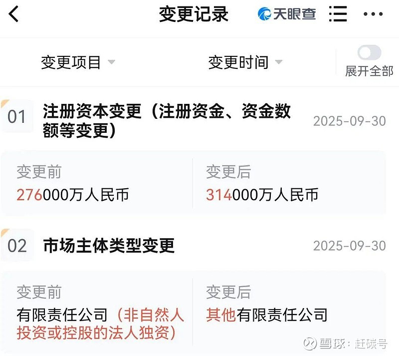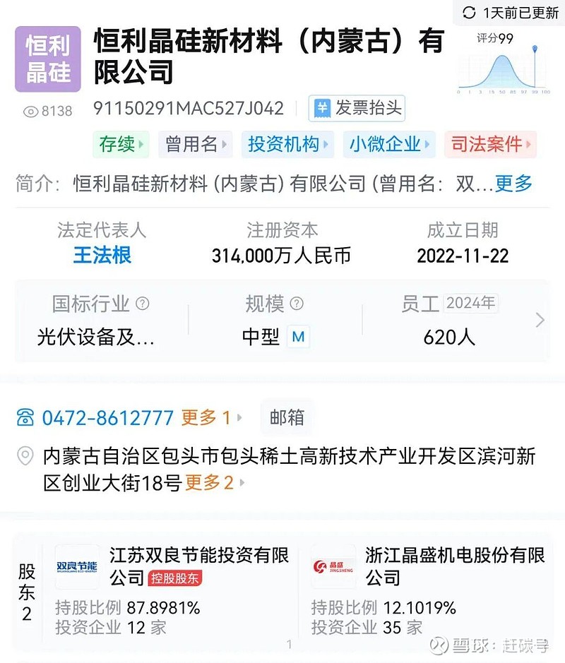 赶碳号今天在吃瓜群看到一张天眼查截图。图片显示,双良节能一家全资孙公司的股权发生重要变更——9月30日,晶盛机电以增资的方式成为其股东,持股比例12.1019%。