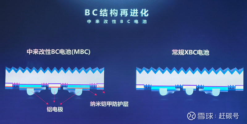 但是,BC电池的成本相较于TOPCon电池更高,这也是目前BC电池市场份额仅约10%的原因。为此,中来股份对BC电池进行了重新优化,核心目标是彻底解决BC电池金属化成本过高的问题,只要解决这一问题,就能充分释放BC电池的技术优势和性能潜能。