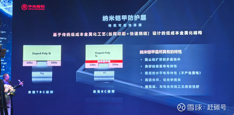 纳米铠甲层的核心作用,是在高温烧结时阻止铝扩散到多晶硅中。大家都知道,铝在硅晶体中的扩散系数大、扩散速度快,一旦铝扩散至多晶硅层,就会形成负荷中心,导致BC电池的转化效率大幅下降。