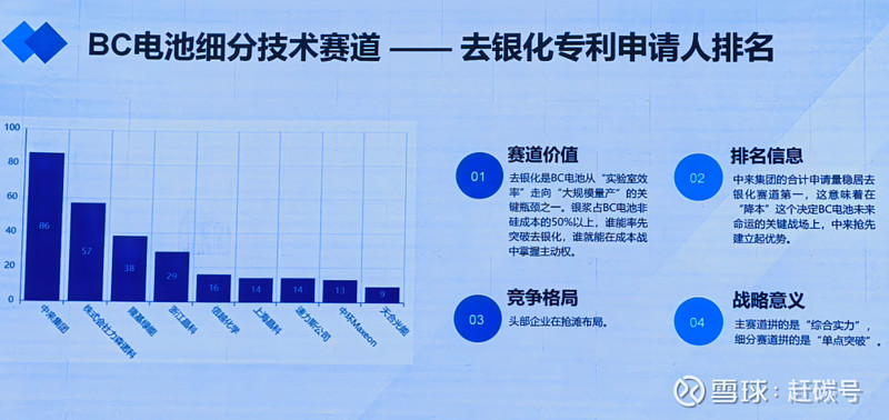 金之桥专利总监邱岳阳在相关报告中指出,去银化是BC电池从“实验室效率”走向“大规模量产”的关键瓶颈之一。银浆占BC电池非硅成本的50%以上,谁能率先突破去银化,谁就能在成本战中掌握主动权。中来集团的合计申请量稳居去银化赛道第一,这意味着在“降本”这个决定BC电池未来命运的关键战场上,中来抢先建立起优势。