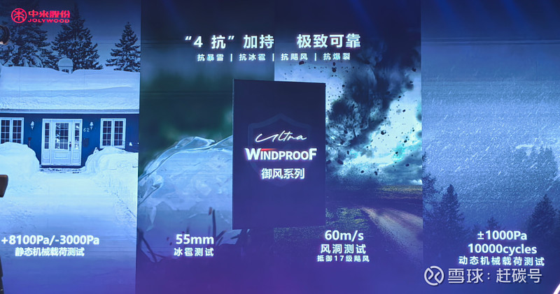 依托全钢化玻璃和高性能钢边框的组合设计,中来组件实现了抗暴雪、抗冰雹、抗飓风、抗爆裂的四抗特性:通过55mm冰雹测试、60m/s 风洞测试(可抵御 17 级飓风),还能完成±1000Pa 下10000 次的动态机械载荷测试,极致的结构设计让组件的可靠性大幅提升。