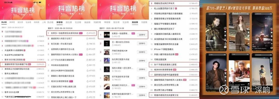 而诸如“谁懂红人流光复古风穿搭的含金量”、“跟电子闺蜜晒红人秋日穿搭”等关联热点,则陆续引发更多社交圈层关注,促成趋势出圈。其中,由魏凡舒baby、溶溶RONGRONG、欢姐0220等红人联合发起的“跟电子闺蜜晒红人秋日穿搭”挑战赛热点访问次数超2亿。