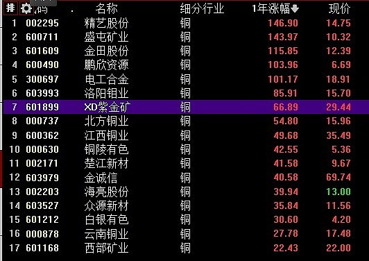 ,,所有铜企(包括冶炼)年度涨幅倒数第一
