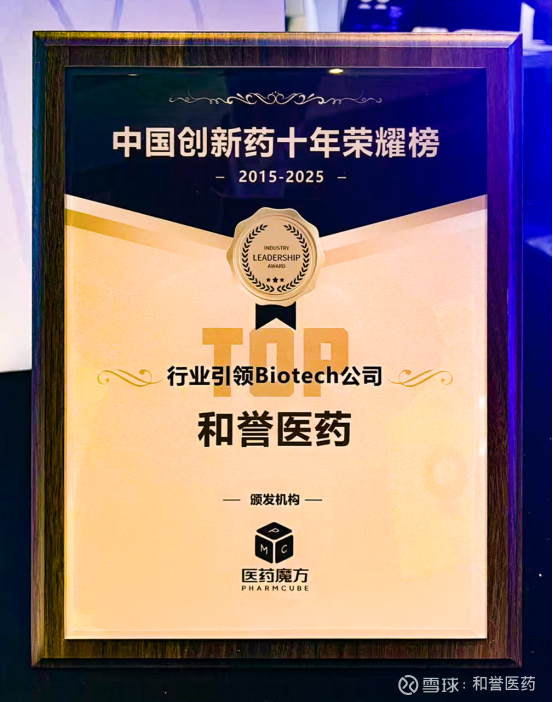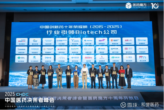 9月24日,由医药魔方主办的2025中国医药决策者峰会(2025 CHDC)、中国创新药十年成就巡礼活动在北京隆重举行。大会现场揭晓了“中国创新药十年荣耀榜”,凭借具有国际竞争力的产品管线和潜力巨大的商业价值,$和誉-B(02256)$ 成功入选“行业引领Biotech公司”榜单。