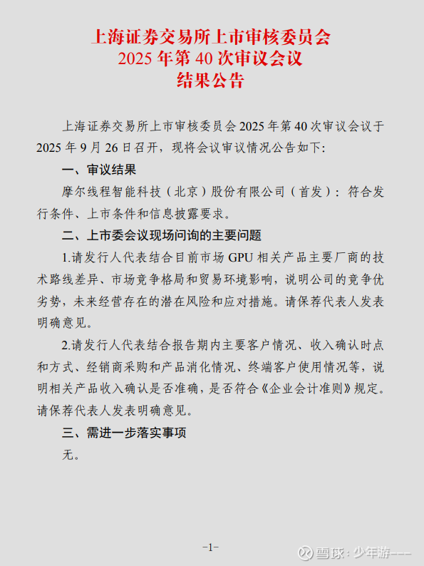 $摩尔线程(A06880)$ 顺利通过上海证券交易所上市审核委员会2025 年第40 次审议会议!!!受昨天的小作文和今天大盘整体影响,摩尔线程相关概念股被错杀,盘中随有反弹,仍不敌大盘情绪影响,今天拨云见日,终于是有心人没有阻挡成功国产GPU发展的关键一步!希望周一相关概念股及收益股东$联美控股(SH600167)$ 先飞一会,带动国产替代科技再战起来。