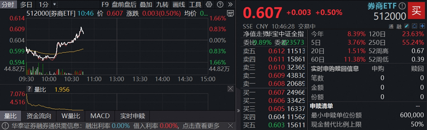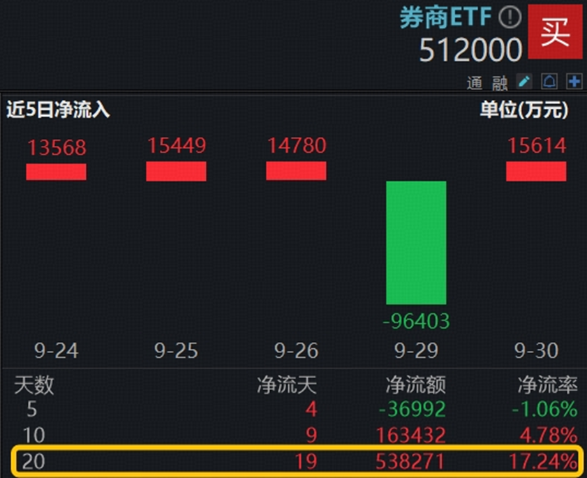 值得注意的是,券商板块近来持续吸金。以顶流券商ETF(512000)为例,上交所数据显示,券商ETF(512000)近20个交易日累计获资金净流入53.83亿元。券商ETF(512000)最新规模已超350亿元,年内日均成交额超10亿元,为A股规模、流动性居前的顶流券商ETF。