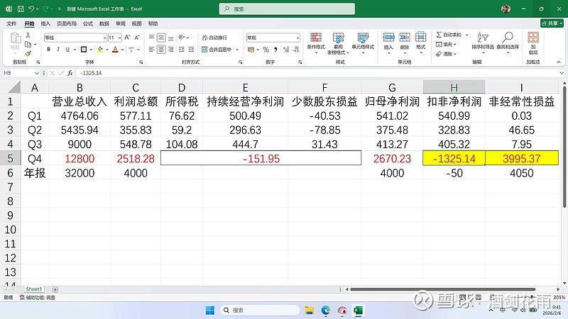 Q4主营亏损1325.14万,非主营盈利3995.37万?