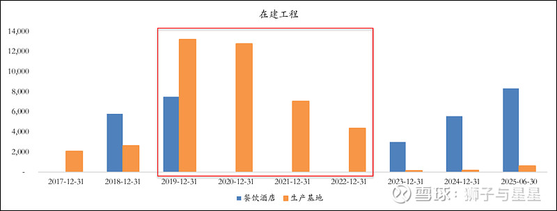 于是把在建工程打开,原来2019是餐饮酒店扩张最后一年,下一次扩张是2023年常态化管理之后了。疫情期间的资本支出是生产基地,其实就是速冻产品产能投资,这下豁然开朗了。疫情期间,减少外出家里吃,所以投速冻合逻辑,疫情后,又出来消费,因此餐饮支出开始增加,公司并没有“逆周期扩张”,仍然是“顺周期扩张”