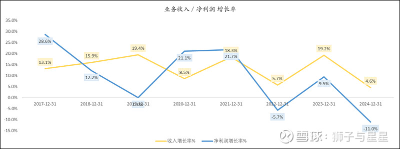 业务收入及利润增速,也算是同涨同跌,经过3年均值钝化,疫情后降速趋势更明显