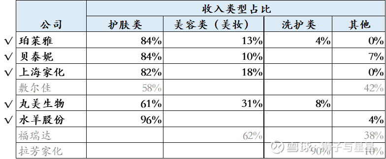 本文会用到很多竞品数据对标,A股上市的化妆品公司大概8家,跟珀莱雅在产品类型上能大致对标的有4家,贝泰妮、上海家化、水羊股份、丸美生物