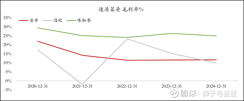 安井12%的毛利率很低了,没想到行业上一比较,还有更低的海欣10%,味知香体量最小,但毛利率尽然最高