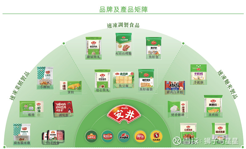 (1)安井食品,主攻火锅料(调制食品),第二增长点在菜肴类,同时面米制品也没放弃