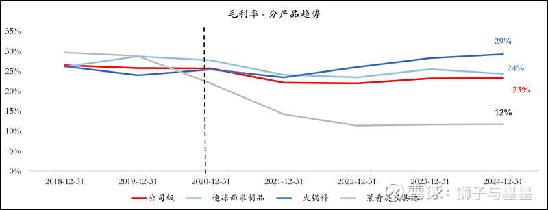 经过上面的分析,可以发现2020年是个分水岭,2020年之前各品类毛利率差不多聚在25%左右,之后因为成本上涨,基于各产品竞争力不同,毛利率开始分化