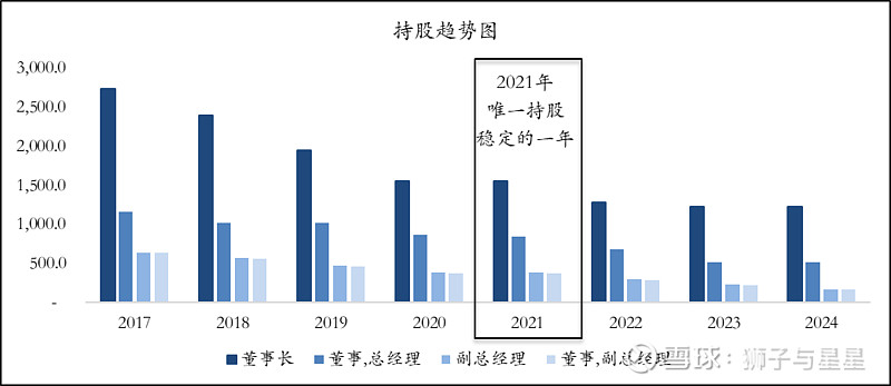 图1,是安井食品上市以来4大高管持股趋势,董秘与财务总监持股太少,虽然也在减持,但是不忽略不计。除2021年持股稳定,几乎每一年都在减持