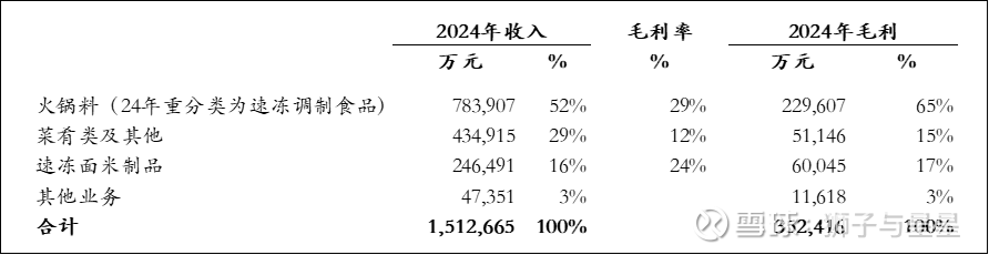 (1)火锅料,现在叫调制食品,收入占比52%,毛利占比65%,是公司收入及利润的主要贡献产品