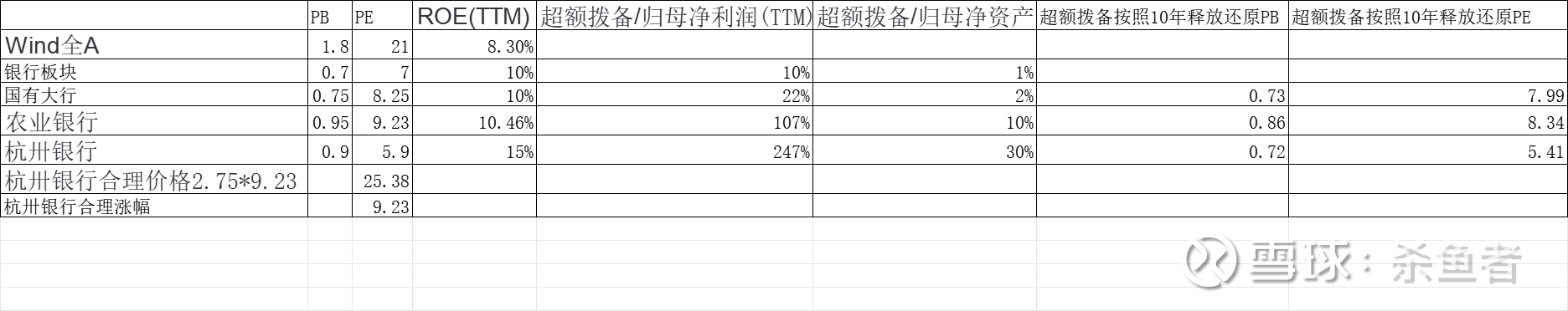 综上所述杭州银行R0E---15%,超额拨备/归母净利润(TTM)—-247%,超额拨备/归母净资产——30%,杭州银行和农业银行一样PE估值是正常且也是大概率的