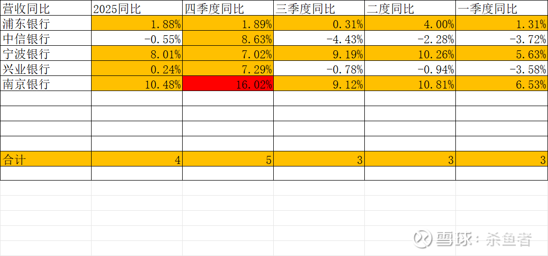 银行四季度营收!营收!银行年报中最重要的数据------营收同比点阵图