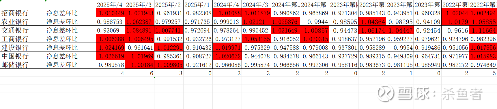 从上表点阵图看2025年三,四红色(净息差环比为正),2026年银行业净息差为正是确定性的事,尚有余粮的银行不多了,物极必反!