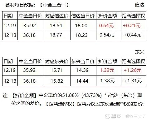 1、东兴以43.73%换股比例,计算下来拥有丰厚的油水,在折价率上拥有优势。但距离选择权有点远,要依靠中金和信达的选择权提供间接保护,适合激进型套利兄弟。