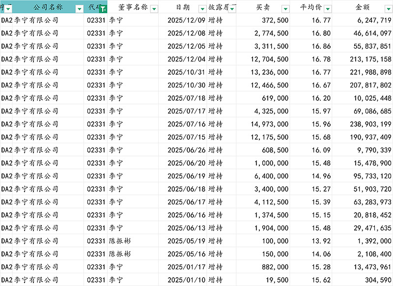 $李宁(02331)$