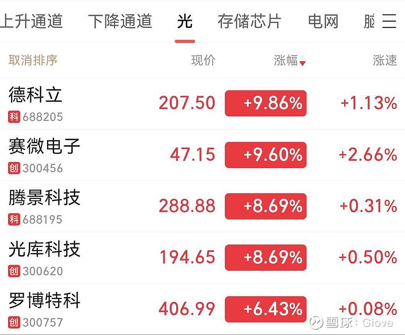 OCS四大金刚集体跻身光板块涨幅前4名,算上萝卜,前五名也占满了,留个合影吧。也不用太激动,这只是市场刚开始对OCS另眼看待而已。继续劝人别追高$德科立(SH688205)$$腾景科技(SH688195)$$罗博特科(SZ300757)$