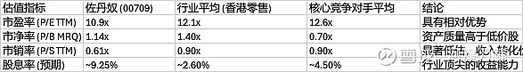 下表列示了佐丹奴与主要竞争对手及行业均值的估值对比: