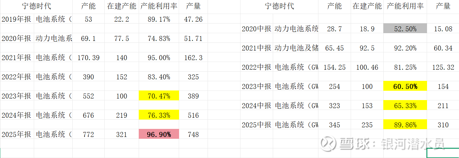 如上表,自2024年中报开始至今,宁德时代产能利用率环比稳健提升,2025年报产能利用率创新高为96.9%,产能超负荷运转。仔细观察发现,2025中报产能利用率89.86%、而年报产能利用率96.9%,意味着2025下半年的产能是100%超负荷运转。侧面看得出扩产需求非常紧迫。