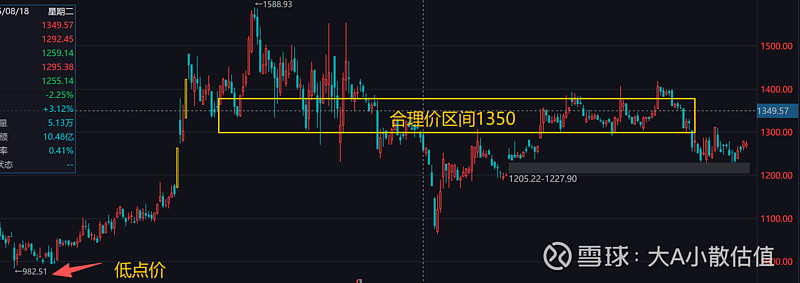 股价 15年合理价1350,25年合理价10000(后复权,合理股价指当年该时段,比较容易买到或卖出的价格,并非单指股价是否合理估值)