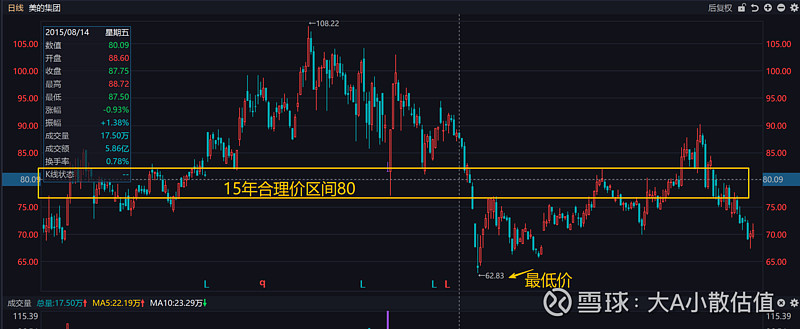 股价 15年合理价区间80,25年合理价区间350(后复权,合理股价指该年时段,比较容易买到或卖出的价格,并非单指股价是否合理估值)