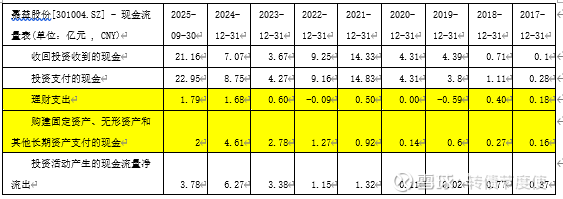 收回投资收到的现金和投资支付的现金之间的差额就是理财支出,也就是交易性金融资产余额形成的原因,2025年三季度末,交易性金融资产4亿元,而从2023年到2025年一共净支出4亿元左右,也都对的上。