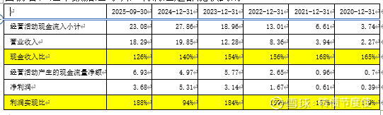 最后再对比一下现金流和利润表上数据之间关系,现金收入比常年超过100%,说明营业收入的质量是比较实在的,利润实现比这个是我自己定义的一个指标,这个指标用经营活动产生的现金流量净额去除以净利润,得到的数据来大概看看公司净利润数据成色,目前看,这个数据还可以,利润还是都能收到的。