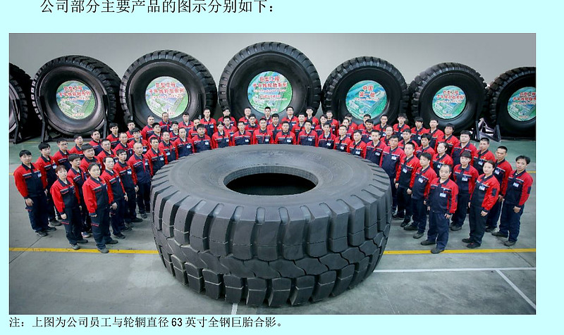 公司员工与轮辋直径 63 英寸全钢巨胎合影。
