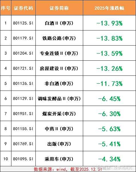 #缘富读潜力股2026# 网上看到这个2025年没有涨的板块。调味品板块,传媒板块,这两个板块我这段时间和前不久也在看。而白酒饮料行业的话,我也在观察等待。煤炭和中药,我的手中还持有,还在等待能不能再创新低。但是手中也没有钱,也只有换仓,再看机会吧。投资其实也是挺简单的,买的就是多少年没有涨的板块里或者跌了有几年的板块里的比较好的股票,这也就是说在桶里面射鱼的道理。