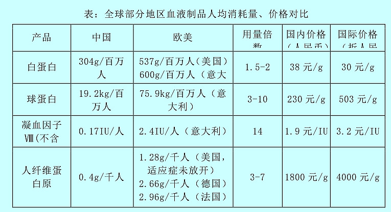 当前我国年采浆量在 1 万吨左右,相较于美国存在 4-5 倍的差距,“十四五”期间全国浆站数量和人均采浆量均有进一步提升空间;受制于上游血浆资源长期供应不足等原因,我国的血液制品人均用量和应用领域等方面远低于发达国家水平。