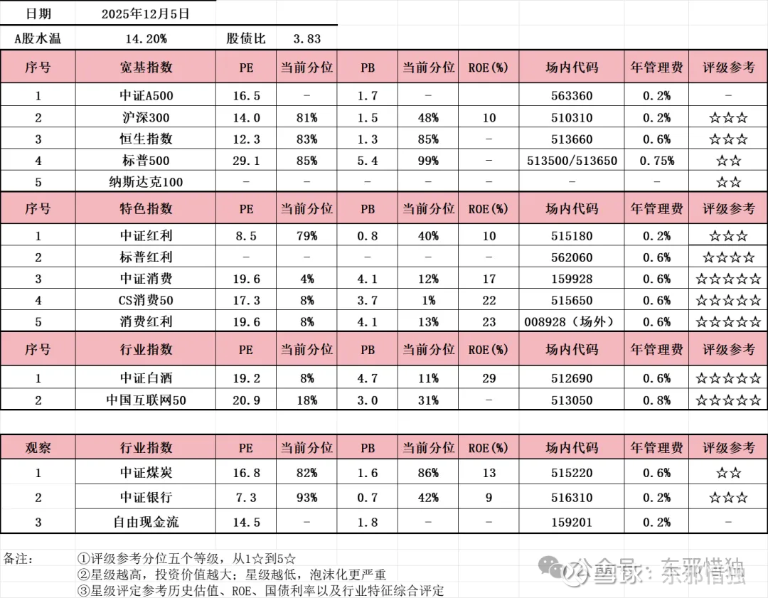 本周A股水温继续升温,为14℃。股债比达到3.83,主要原因是指数估值上升和国债利率上涨带来影响,两个因素都导致A股的吸引力在下降。