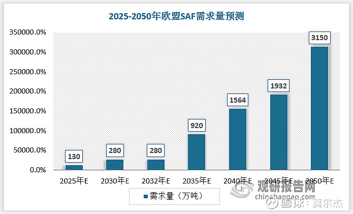 国际民航组织已确定2050年前实现国际航空业净零排放的目标,可持续航空燃料(SAF)作为航空业脱碳的主要手段,市场需求将不断增多。截至 2025 年 1 月底,全球多个国家均出台 SAF掺混比例政策,其中欧盟、澳大利亚等地的政策推行力度较大。