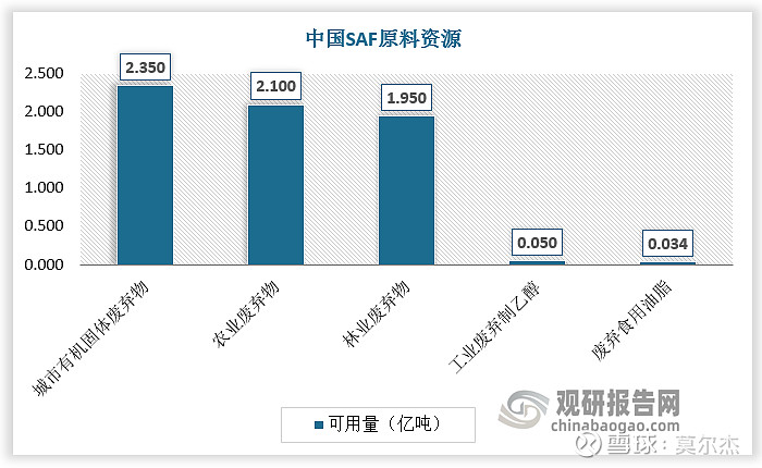 中国有望成为可持续航空燃料(SAF)主要供应国。从原材料看,理论上,废弃油脂、农林废弃物、城市有机固体废弃物、废塑料、废轮胎、工业尾气、能源作物等均可用于 SAF 生产。中国具备丰富的潜在可持续航空燃料(SAF)原料资源,包括每年2.35亿吨的城市有机固体废弃物、2.1亿吨的农业废弃物、1.95亿吨的林业废弃物、500万吨的工业废弃制乙醇、340万吨的废弃食用油脂。若这些原料得到充分的利用,理论上可持续航空燃料(SAF)的产能上限超过4600万吨/年,发展潜力巨大。