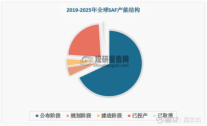全球SAF生产尚处于初级阶段,超6成以上产能仍处于公布阶段,已投产产能中仅有约三分之一用于生产SAF产能,其余主要以生产其他可再生燃油为主。