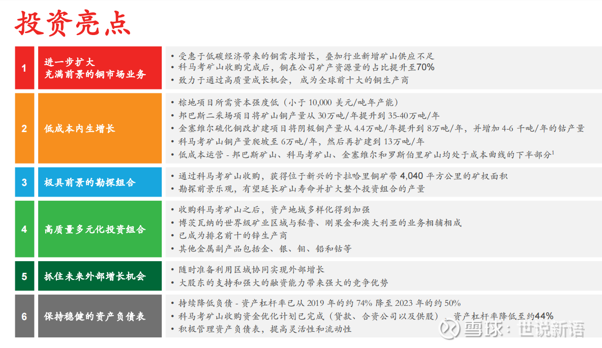 在铜价大涨前夕,收购博兹瓦纳优质铜矿55%股权,该矿未来产能可以从4万吨扩张到13万吨,成本会大幅降低