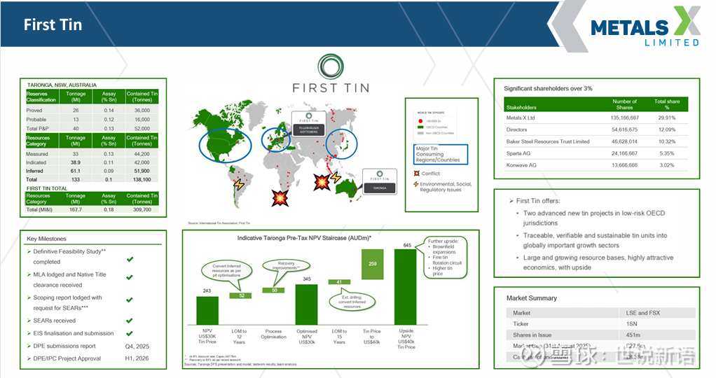 公司还持有英国上市公司First Tin 29.91%股份,是其最大股东,First Tin拥有澳洲和德国两个锡矿,资源量30.9万吨;
