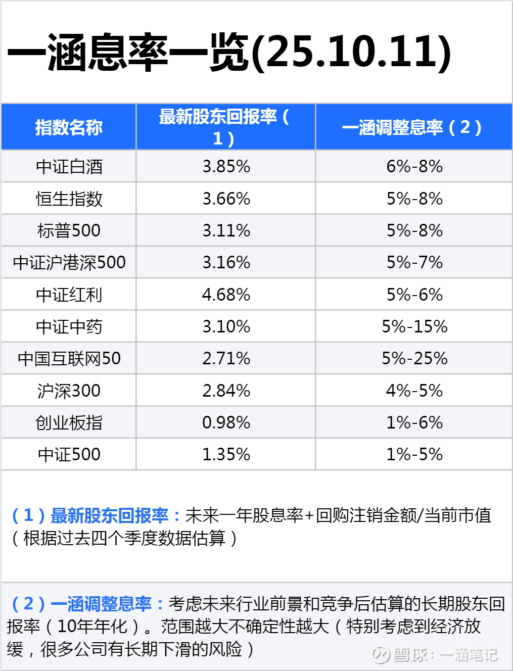息率一览表详情说明可查看历史文章:《看懂这张表,秒变巴菲特!》。长文专栏+AI分身+息率跟踪,都在“一涵笔记”