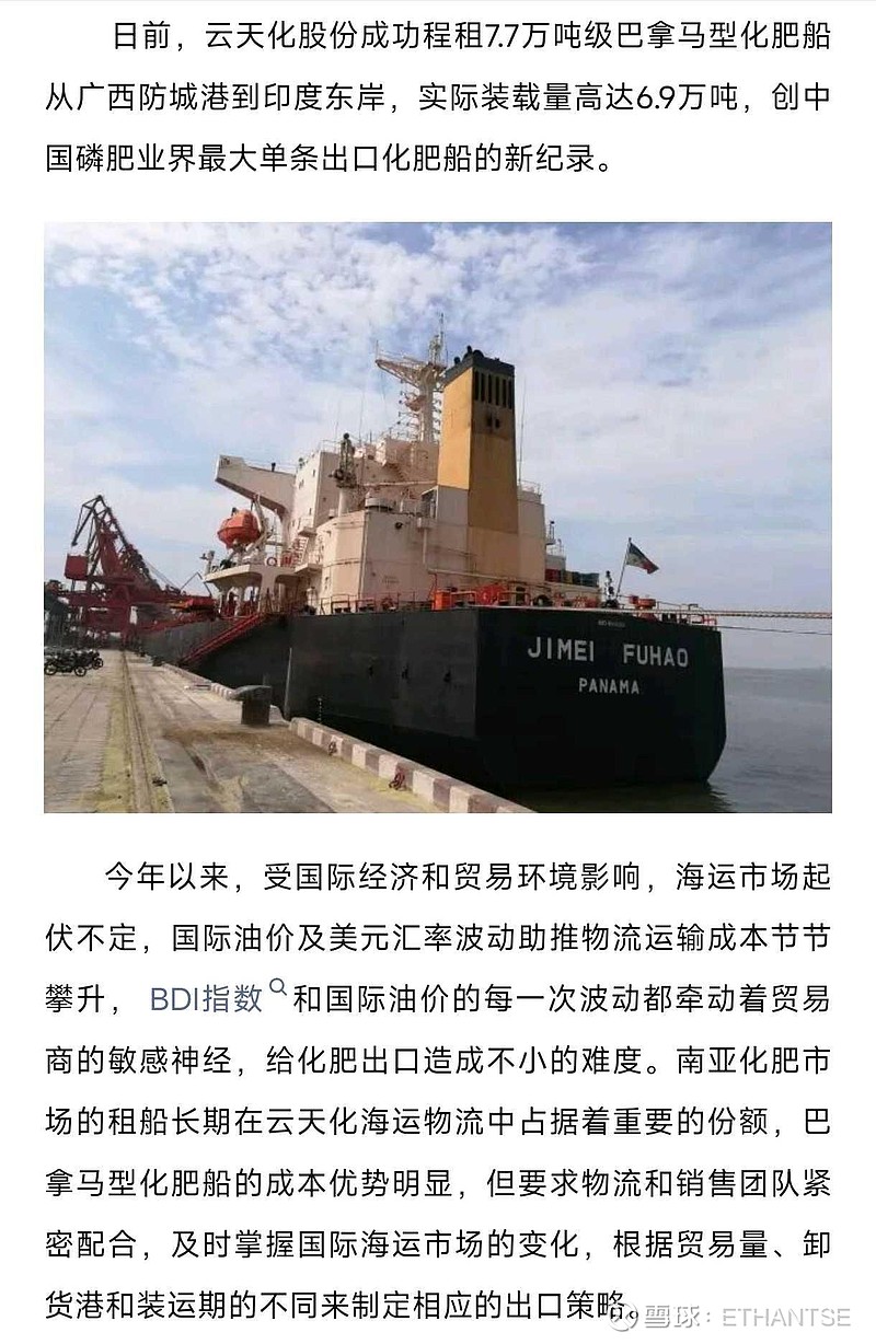 关于云天化出口:国际磷肥5800元/吨+,国内出口价差1600元/吨+,景气度极高。