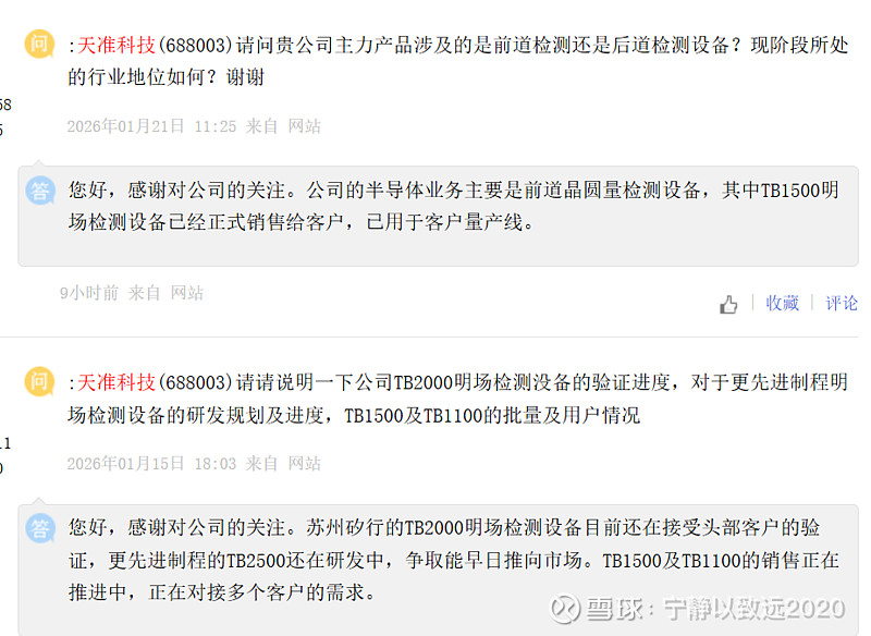 苏州矽行的TB2000明场检测设备目前还在接受头部客户的验证,更先进制程的TB2500还在研发中,争取能早日推向市场。TB1500及TB1100的销售正在推进中,正在对接多个客户的需求。