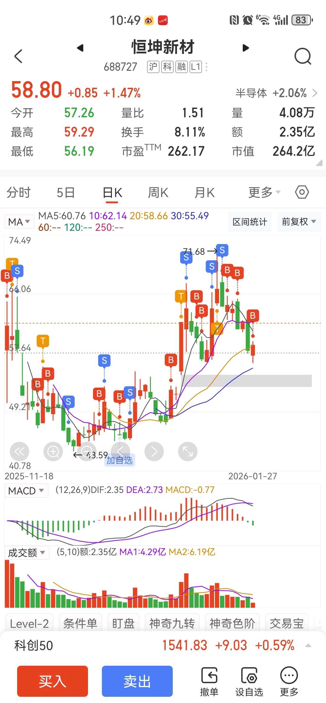 回复@野性的呼唤87: 恒坤新材一路顺风顺水,走上去。本打算55左右再接回来。大意了。接早了//@野性的呼唤87:回复@野性的呼唤87:看来罗博特科160*3=480坚持住,不能再SS了喜欢有业绩预期的股。比如恒坤新材,优迅股份。不过这类股容易暴涨暴跌。涨了不卖是不可能的啊。恒坤新材BBB急了一点 查看图片