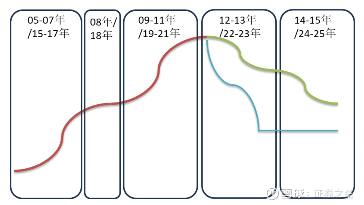 尽管本轮调整力度有所不同,但是节奏类似,都经历了“复苏-繁荣-中继调整-泡沫化-衰退”的阶段,背后都是人性和经济发展的规律。