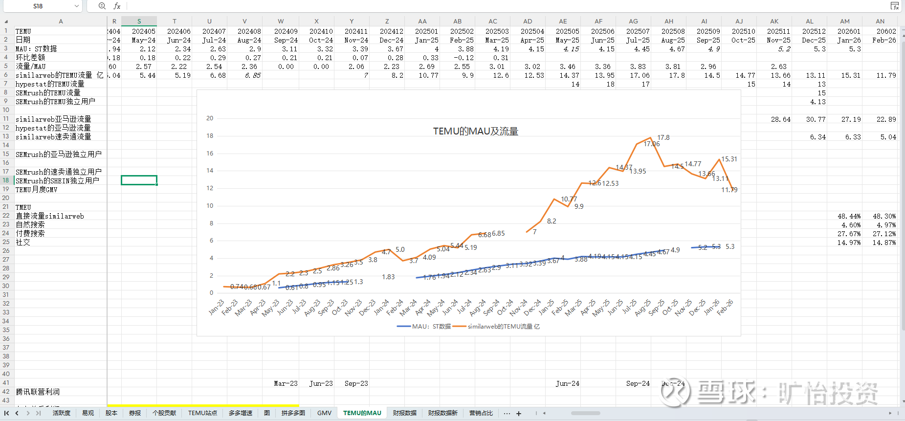 1、TEMU每个月的的流量、MAU